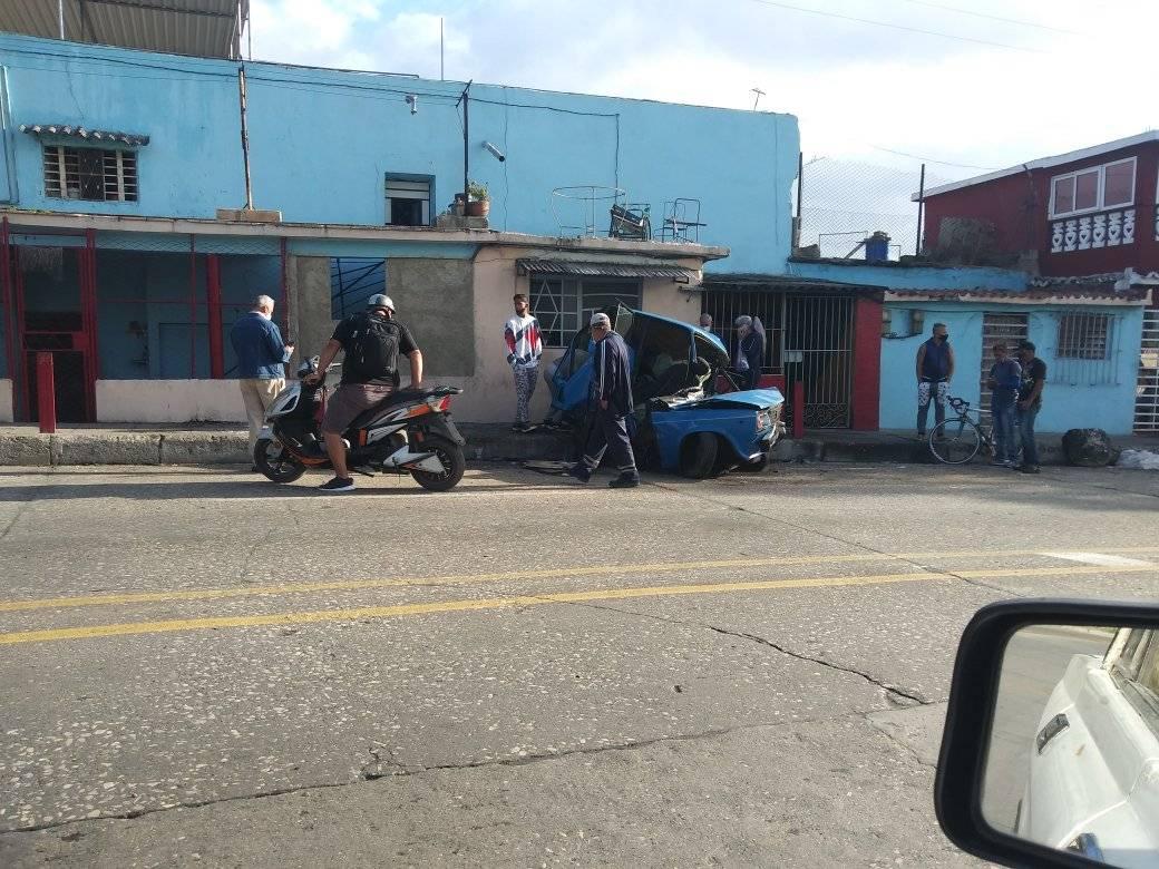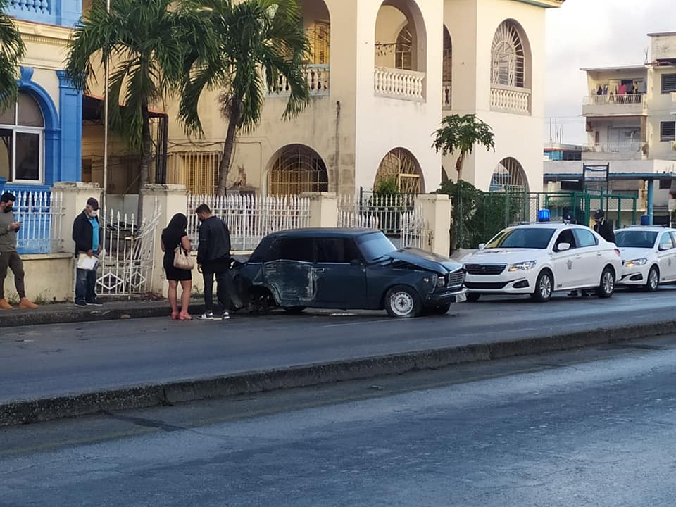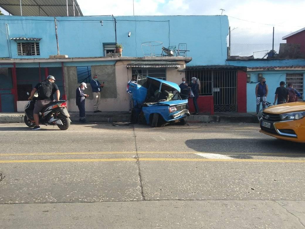 Dos accidentes de tránsito, uno de ellos que dejó el vehículo de la marca Lada totalmente destrozado en la céntrica Avenida 51, en una zona de Puentes Grandes, del municipio habanero de Playa, que es conocida como «la curva del cine Alba».
