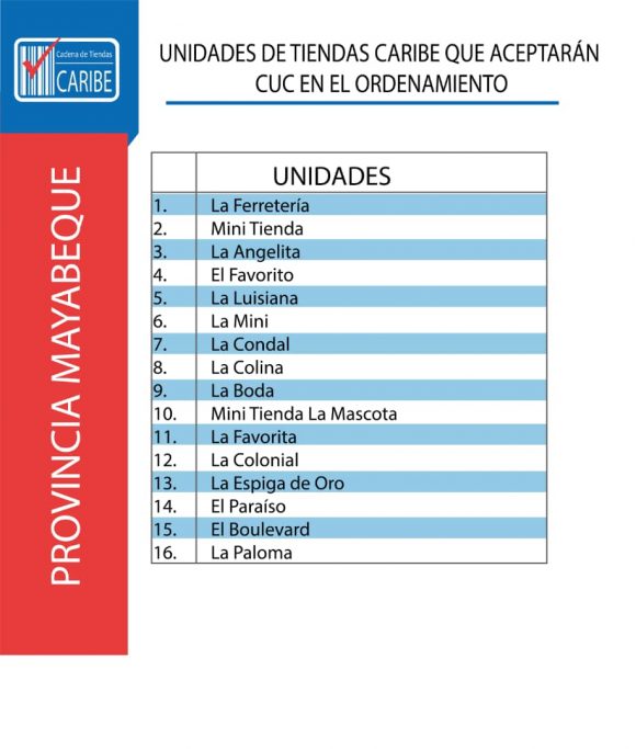 Las 1014 Tiendas Caribe que seguirán aceptando CUC en los próximos 6 meses contarán con una identificación en cada unidad como la que mostramos a continuación con el objetivo de oriental mejor al cliente.