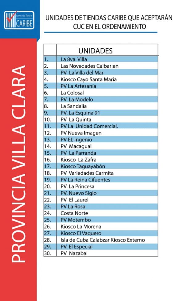 Unidades de Tiendas Caribe en Villa Clara