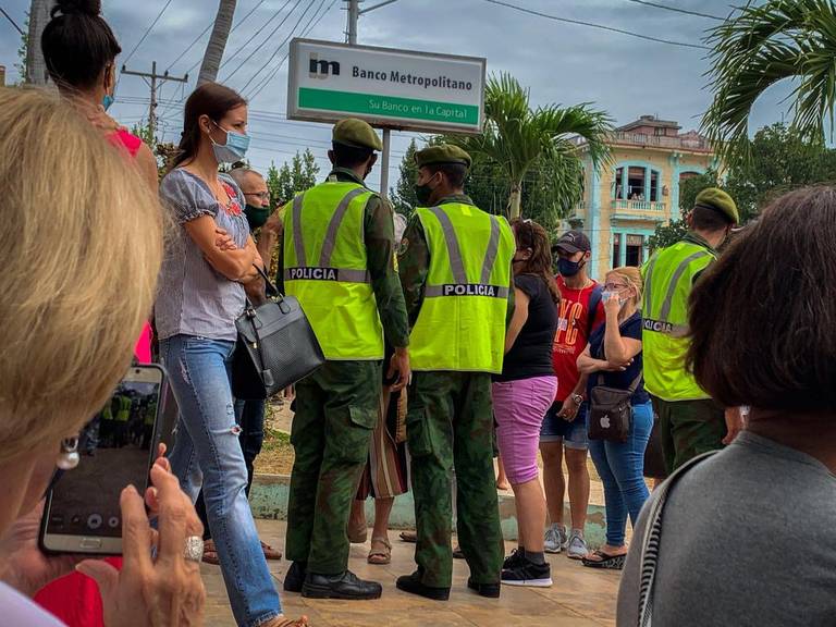 Los bancos de ahorro cuentan hasta con «Avispas Negras» para regir la cola y prevenir mayores incidentes; agentes policiales de refuerzo de las Fuerzas Armadas Revolucionarias (FAR) puestos a custodiar tiendas y bancos, a eso hemos llegado.