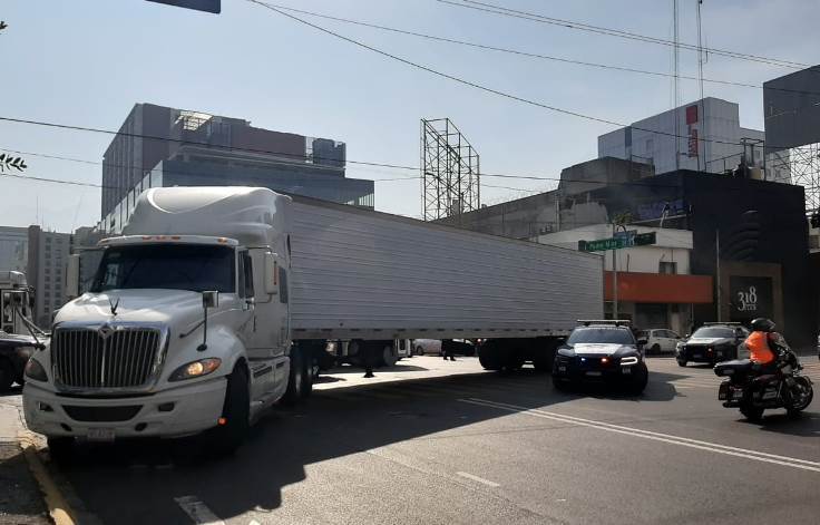 Policías de Monterrey, se encontraban realizando labores de prevención y vigilancia cuando observaron que un tráiler circulaba por Pino Suárez y Juan I. Ramón, provocando un accidente contra un vehículo Aveo en color verde, para después huir.