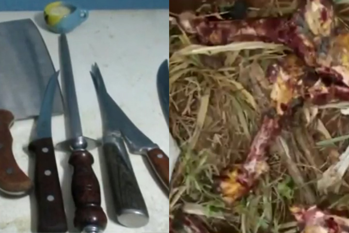 Como parte de la investigación policial se realizó un registro en el domicilio del acusado, donde también se encontraron restos de animales y el instrumental necesario para desmembrarlos y separar la carne.
