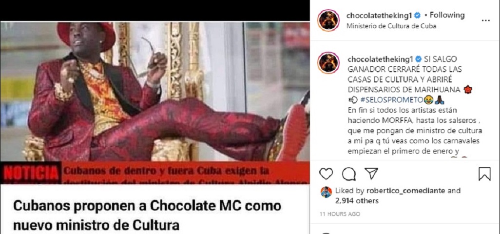 El reguetonero cubano ha vuelto a la carga en las redes sociales con sus polémicas publicaciones. En esta ocasión, el “Rey de todos los reparteros” ha ido un paso más allá al comentarle a sus seguidores que se estaba tomando en serio su “postulación” para ministro de Cultura de Cuba, luego que la broma que pasara a ocupar el puesto de Alpidio Alonso cobrara fuerza.