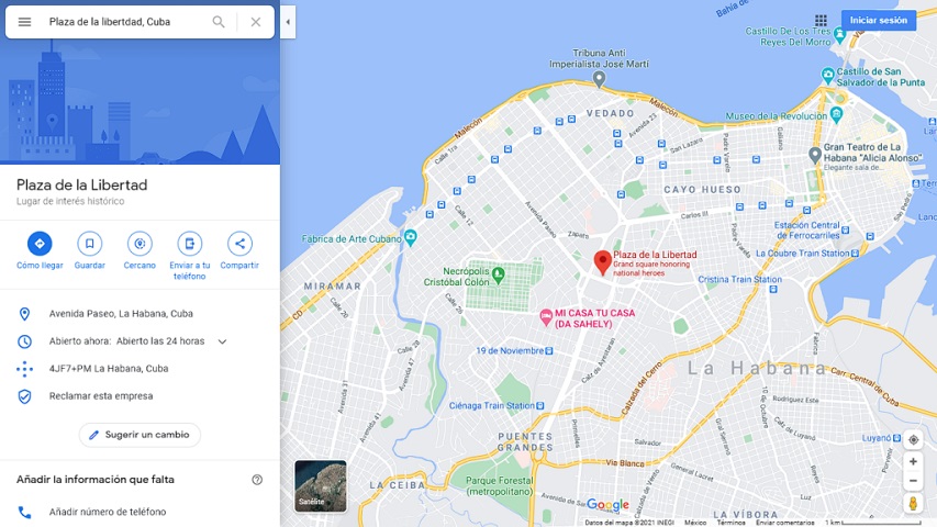 Al menos en Google Maps, queda renovado el nombre de uno de los principales sitios históricos del país. Un golpe más para un gobierno que está siendo atacado desde todos los frentes posibles por su pueblo, que pide a gritos un cambio democrático con urgencia, un cambio que traiga libertad para todos los cubanos.