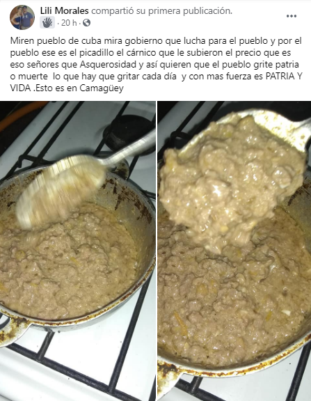 Una camagüeyana dedicó una publicación en sus redes sociales a denunciar la pésima calidad del picadillo racionado por la libreta de abastecimiento, el que le llega por elaboración de la empresa cárnica de su territorio, para lo que agregó: “Así quieren que el pueblo grite Patria o Muerte”.