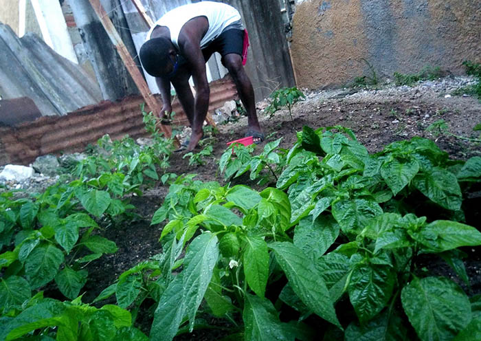 Todos los vecinos se preocupan por la parcela, pero es Carlos Manuel Escaldell Hernández, empleado de la Empresa Agropecuaria del MINIT, quien se encarga mayormente de regar los alimentos en su tiempo libre.