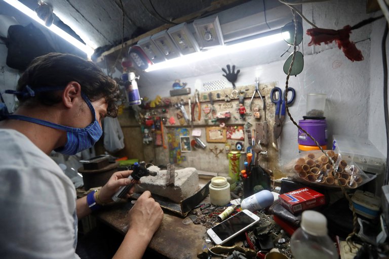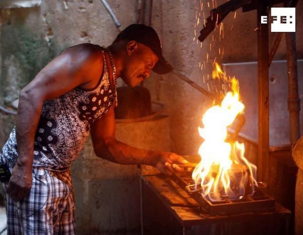 Luis tiene su pedacito de patio en el interior de una antigua y desmejorada vivienda en la Habana Vieja, y allí devuelve el esplendor a esos trastos a base de fuego, agua y pulidora.