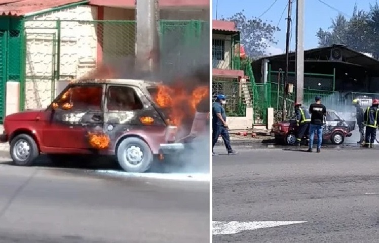 Un automóvil Polski Fiat 126p, conocido en Cuba como “polaquito”, fue devorado por las llamas en plena calle en La Habana.