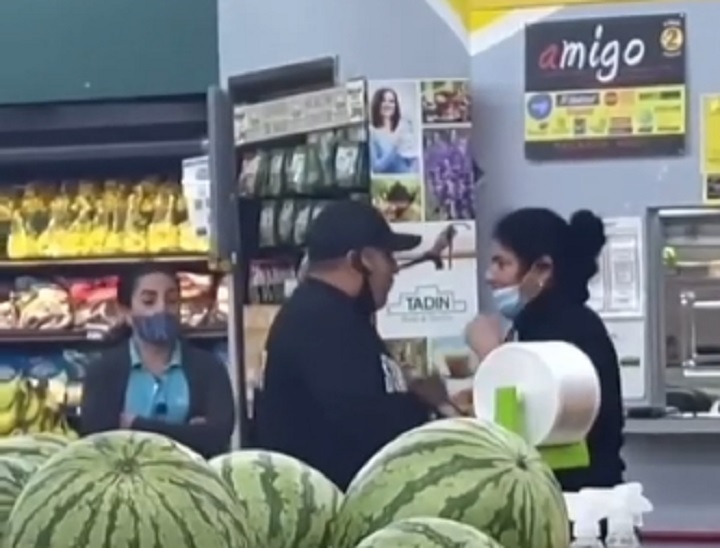 Tras la discusión que estaban presenciando tanto clientes como trabajadores del supermercado, la situación se acaloró aún más por parte de la mujer.
