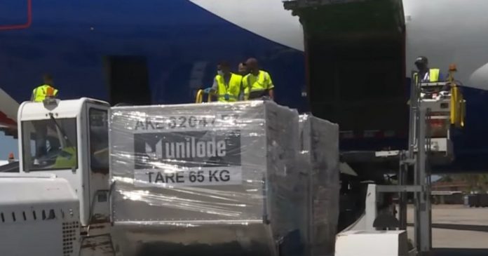 Unas 20 toneladas de insumos médicos para la vacunación contra el coronavirus llegaron a Cuba desde China el pasado jueves en un vuelo de Cubana de Aviación.
