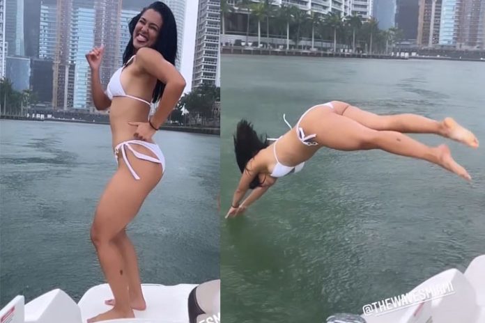 En horas de la tarde del lunes la actriz compartió algunas imágenes de lo bien que se lo pasó en las playas del sur de Florida, junto a un numeroso grupo de amigos sobre una embarcación desde la que bailó al ritmo de Dura, de Daddy Yankee y realizó un elegante clavado con unos bikinis blancos.