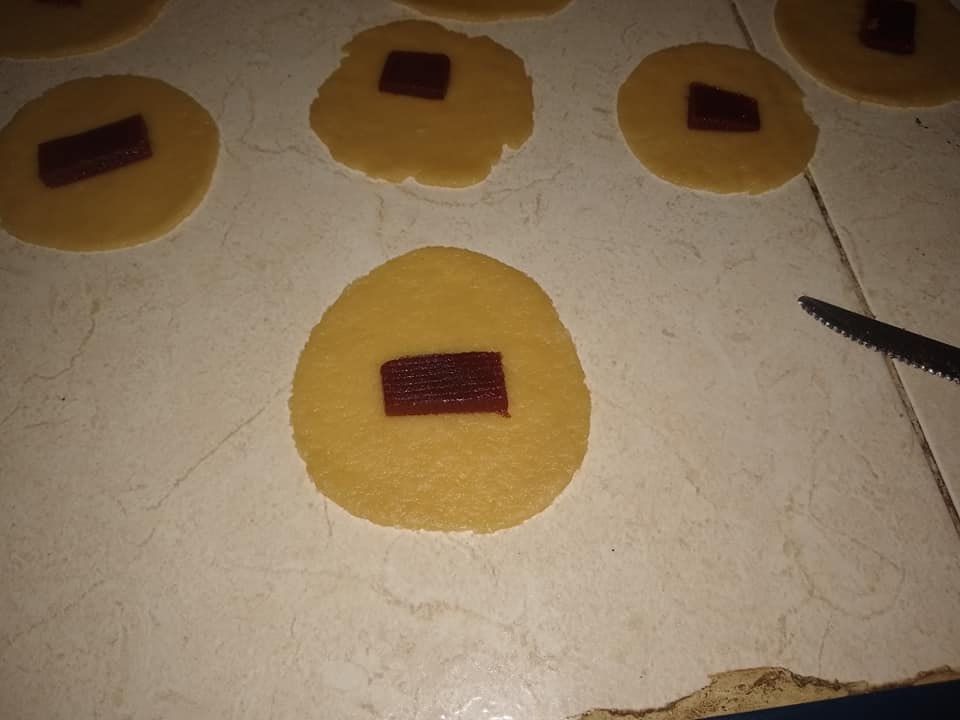 Paso 6 – Ve haciendo discos con un molde cortapastas o un platico de postre o un vaso de boca ancha.