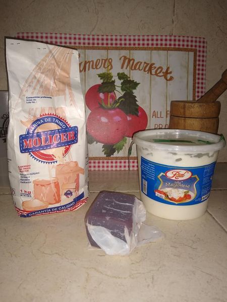 Paso 1 – 2 tazas de harina de trigo, una taza de mayonesa y un cuarto de barra de guayaba.