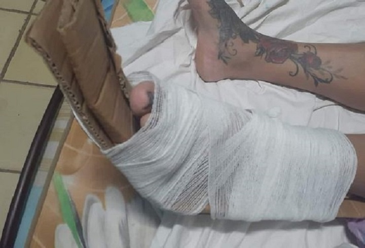 Indignante!! A falta de tablillas, a una cubana en Matanzas le inmovilizan el pie con un pedazo de cartón doblado