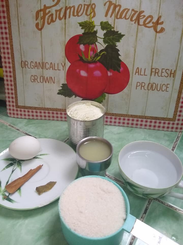 Paso 1 – Ingredientes: un huevo, una ramita de canela, una cascarita de limón, una tacita de zumo de limón, una lata de leche en polvo, dos tazas de agua y una taza y media de azúcar, pero puedes echar menos.