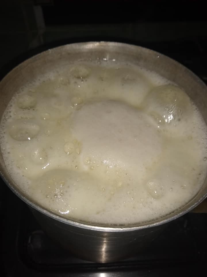 Paso 7 – Quédate vigilando la preparación porque sube como si fuera leche hervida. Ahora baja la candela a media-baja.