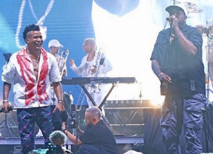 Los reguetoneros cubanos Alexander Delgado y Randy Malcom, integrantes del afamado dúo urbano Gente de Zona, interpretaron el coro de la conga de Bayamo contra la policía cubana durante el concierto ofrecido este domingo en Miami.