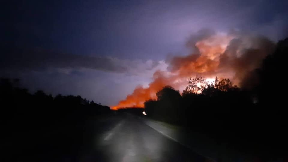 Un incendio de grandes proporciones ocurrió en horas de la madrugada de este viernes en la autopista Gerona-La Fe, en la Isla de la Juventud.