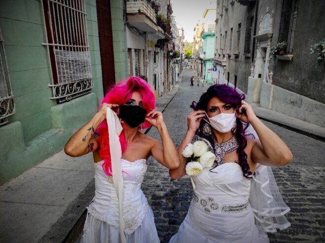 El corto refleja «una problemática entre nosotros los gays (…) que estamos deseando desde hace tiempo el matrimonio igualitario», explica Alfredo durante un descanso de la grabación, con su vaporoso vestido en medio de una turística calle de La Habana, rodeado de niños curiosos y juguetones.
