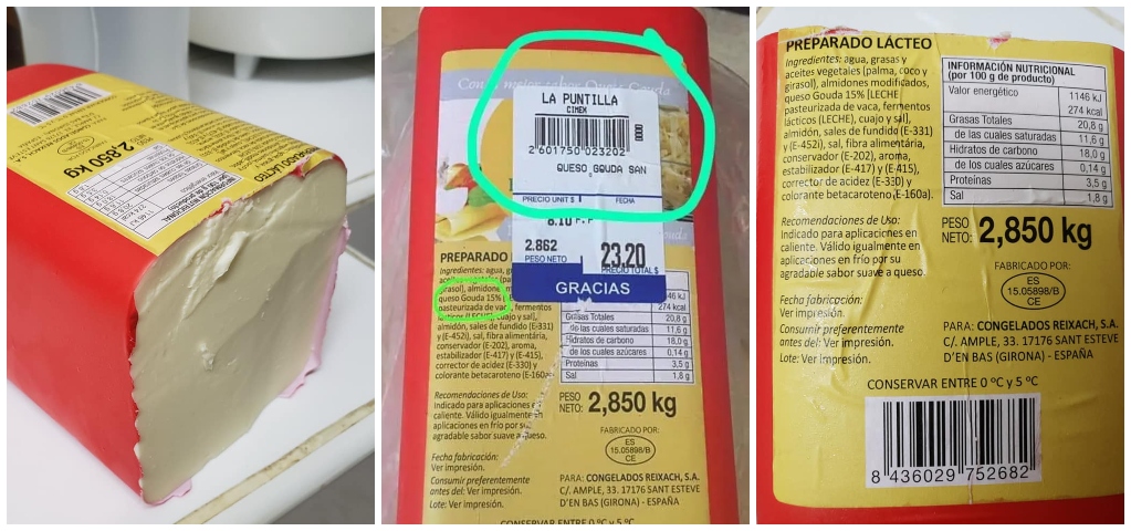 El grupo de Facebook “Todo en MLC” alberga la mayoría de las críticas y denuncias sobre el trma, donde un usuario evidenció que este producto se está vendiendo en las tiendas en MLC como queso gouda, mostrando una imagen de la etiqueta del precio y del comprobante de pago del habanero centro comercial «La Puntilla».
