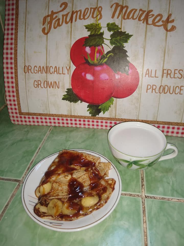 Rellena las crepas con los plátanos en almíbar y dóblalas en 4 para que quede más linda la presentación. Agrega el almíbar por arriba o un poquito de caramelo líquido…. Y whala con un café con leche tienes un desayuno especial.