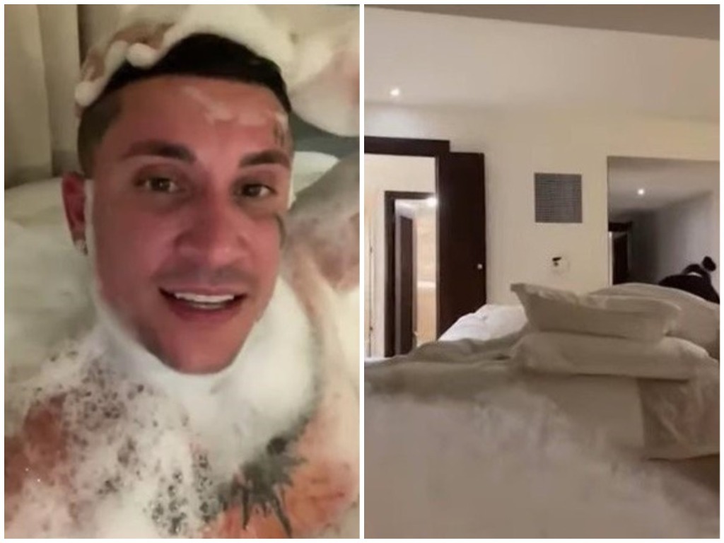 En un video colgado a través de su cuenta en Instagram, el cantante mostró a sus seguidores el desastre que había armado en su habitación del hotel, que llenó completamente de espuma con los productos para la tina del baño.