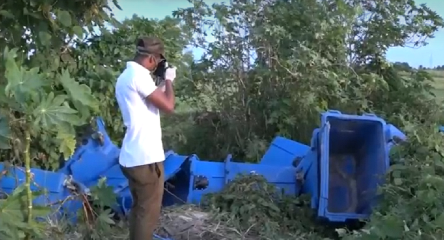 “Al llegar al lugar pudimos inicialmente detener a dos ciudadanos que se encontraban vigilando el sitio donde estaban desguazando los tanques. Al avanzar un poco más, encontramos a otros tres que estaban desguazando los tanques de desechos sólidos y se les ocuparon varios machetes y mochas que utilizaban para ejercer la actividad”, informó uno de los agentes presentes en el operativo.