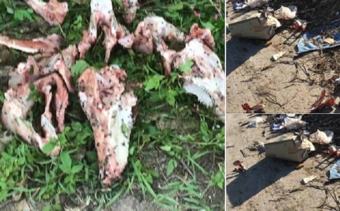 “Hace aproximadamente casi 2 o 3 meses están apareciendo estas cabezas de perros hoy me dediqué a tirarle foto. Cuidado con las hamburguesas y picadillos caseros, si me pongo a recogerlas de otros viajes llenaría 3 o 4 sacos”.