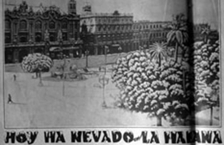 “Por primera vez en Cuba, tuvo lugar en horas de la mañana de hoy una ligera nevada en el centro de La Habana y algunos puntos de la periferia. La nevada comenzó a las 6:17 minutos y terminó a las 7:11. El fenómeno puede tener su origen en la penetración de una corriente fría, a baja altura, en la atmósfera tropical, saturada de humedad. A esa hora se registraban altas presiones en el nordeste de Estados Unidos, presión normal en el Caribe y una ligera depresión en la zona del Istmo”, señalaba uno de los partes.