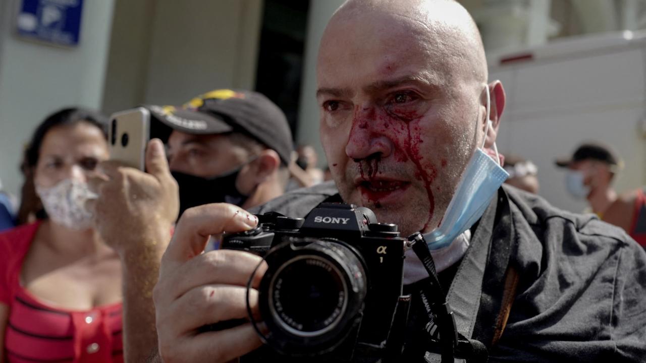 La policía de Cuba agredió ayer domingo al fotógrafo de la agencia AP Ramón Espinosa, quien cubría las protestas contra el régimen del presidente Miguel Díaz-Canel en La Habana y terminó con el rostro ensangrentado.