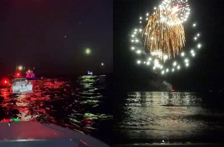En algunas de las imágenes que han comenzado a circular en las redes sociales, se pueden ver a lo lejos las bengalas encendidas por los exiliados cubanos en costas de La Habana.