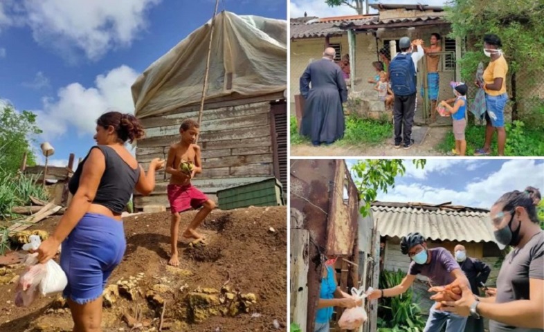Un cura cubano acudió a Caguazo, una de las zonas más pobres y alejadas del municipio Bejucal, en la provincia Mayabeque, para repartir alimentos a los más necesitados.