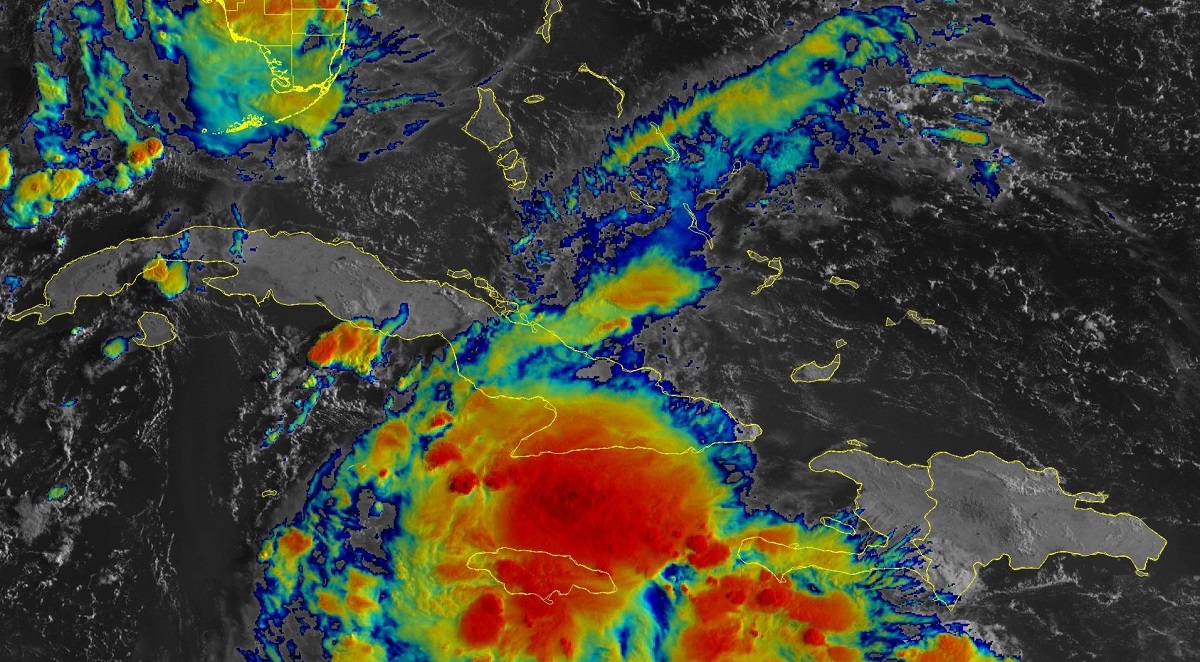 Dicho fenómeno tiene una extensa área de nublados con fuerte actividad de chubascos y tormentas eléctricas que cubren en estos momentos gran parte del mar Caribe central, Jamaica y llegan hasta la porción sur de la región oriental de Cuba.