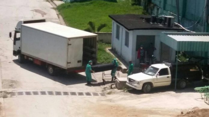 Este sábado, una internauta identificada como Elsa Linares Méndez realizó una publicación en la que se pueden apreciar como los ataúdes son subidos a camión en las afueras de la morgue del hospital de Bayamo.