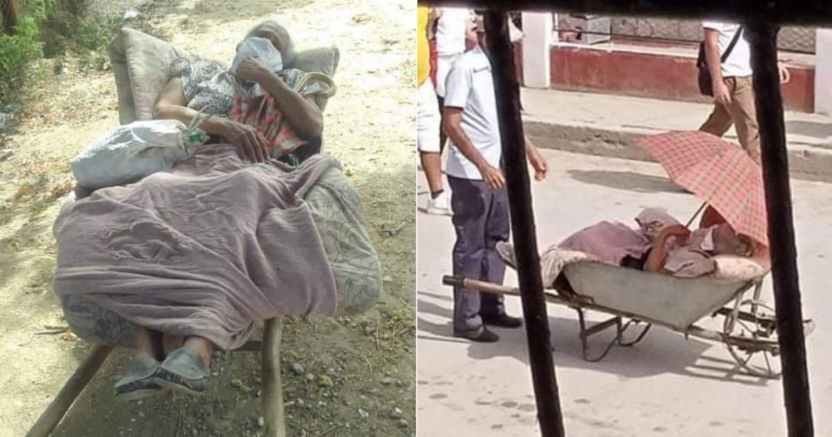 En las últimas horas han estado circulando en las redes sociales las impactantes imágenes de una anciana cubana a la que tuvieron que trasladar en una carretilla en el municipio Antilla, de la provincia de Holguín, al no haber disponible otros medios para poder llevarla a un hospital.