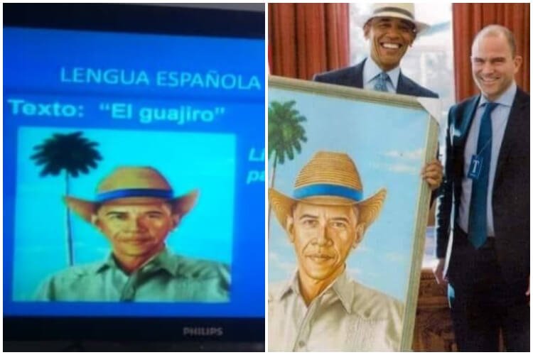 “La imagen que acompañaba la orientación televisiva era una reproducción de un cuadro que regaló a Barack Obama el pintor Rogelio Fundora, y que representaba al expresidente estadounidense vestido de guajiro cubano, con sombrero y todo”, explicó González.