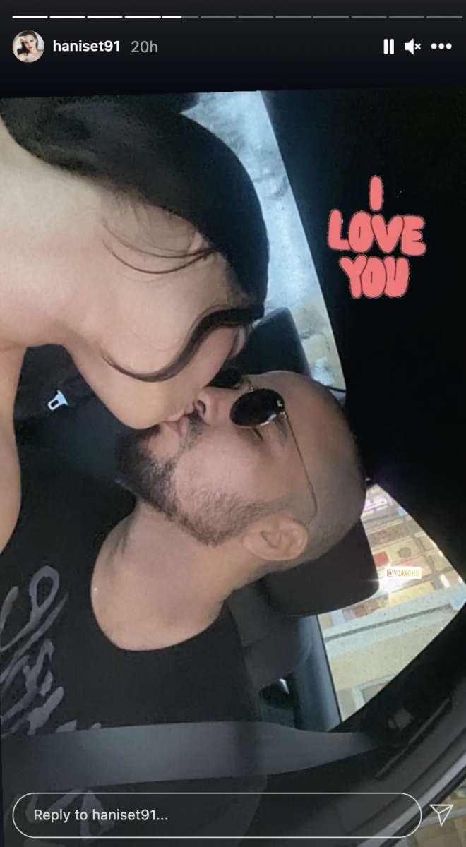 A través de sus historias de Instagram, Haniset compartió una foto en la que se le ve dándose un beso con su nuevo.