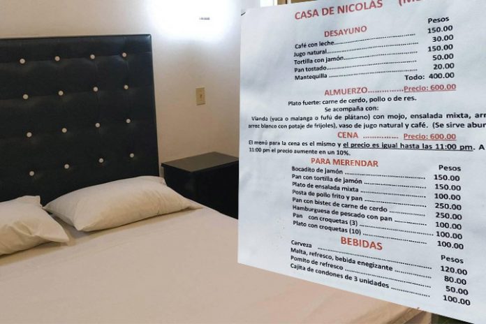 Sacando una cuenta “por arribita” el pasarse una noche (12 horas) sale en 850 CUP. Eso solo por concepto del uso de la habitación. La cosa comienza a complicarse a la hora de hacer de ese tiempo en pareja algo más que intercambios de todo tipo encima del colchón.