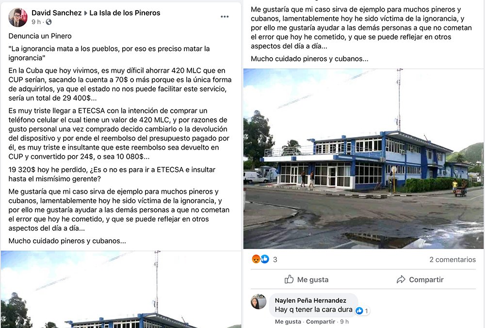 Un cubano, residente en la Isla de la Juventud, compartió en redes la sociales la indignación que siente al haber perdido en un abrir y cerrar de ojos 19.320 pesos al devolver un teléfono comprado en Moneda Libremente Convertible a ETECSA.