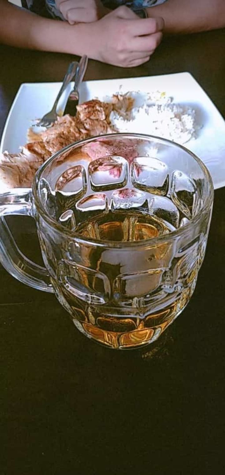 Y decido entrar con unas amistades al antiguo almacén de madera y tabaco. Actualmente una cervecería. Está de más decir que este lugar es un establecimiento estatal. En este lugar ahora mismo se encuentran ofertando la jarra de cerveza a 44 pesos.