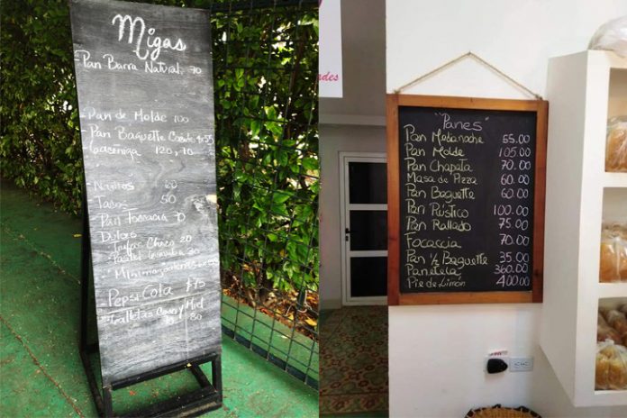 En su post, a modo de ejemplo, compartió una foto de una panadería ubicada en el Vedado habanero, en la que se puede apreciar que en la tablilla de precios destacan algunas ofertas como el pan de molde en 105 pesos o el pan rústico en 100. Posiblemente, los precios de estos panes sean más altos que en Bermudas o Suiza.