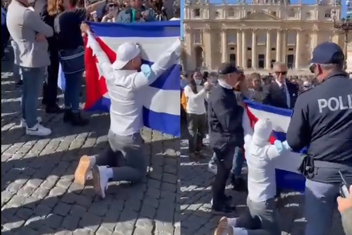 No obstante, a las redes sociales ha llegado un video en el que se puede apreciar como un nacido en la mayor de las Antillas logra entrar en el sagrado sitio, colocarse de rodillas y sacar una bandera cubana. El corto audiovisual muestra cómo la policía lo retira del sitio.