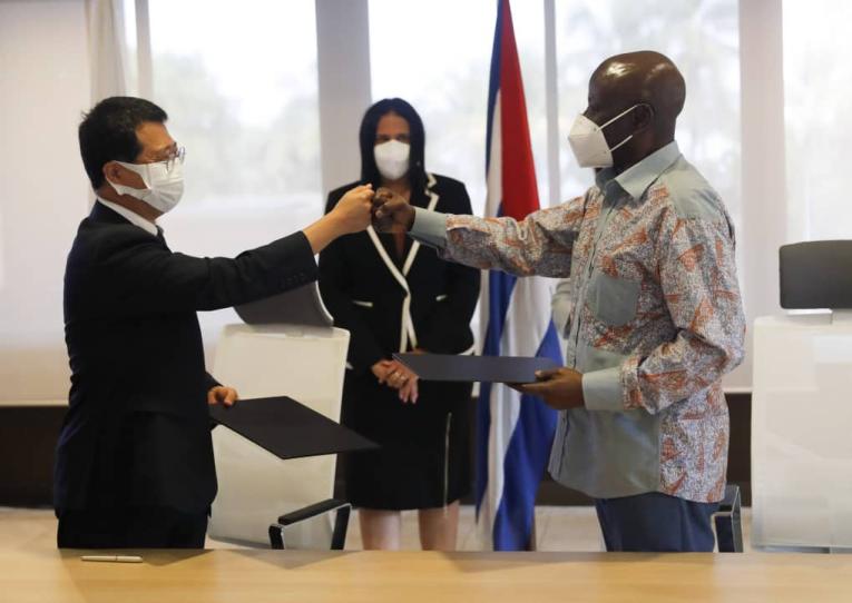 La rúbrica contó con la presencia de Déborah Rivas Saavedra, viceministra de Comercio Exterior y la Inversión Extranjera, de funcionarios del Ministerio de Salud Pública y de BioCubaFarma, y de representantes de los organismos de las Naciones Unidas, acreditados en Cuba, junto a diplomáticos japoneses.