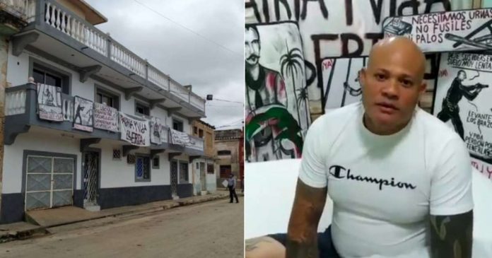 Las imágenes de su vivienda con carteles en los Balcones han sido compartidas por varios internautas cubanos, quienes aseguran que el hombre detenido en horas de la tarde del lunes.