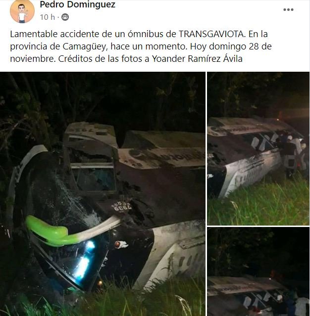 «Fue en el puente de la cuchilla, hay un fallecido», indicó en Facebook un comentarista. Otros precisaron que el accidente fue en la comunidad rural Simón Bolívar y que “la guagua iba para Cayo Cruz y venía de Holguín”.