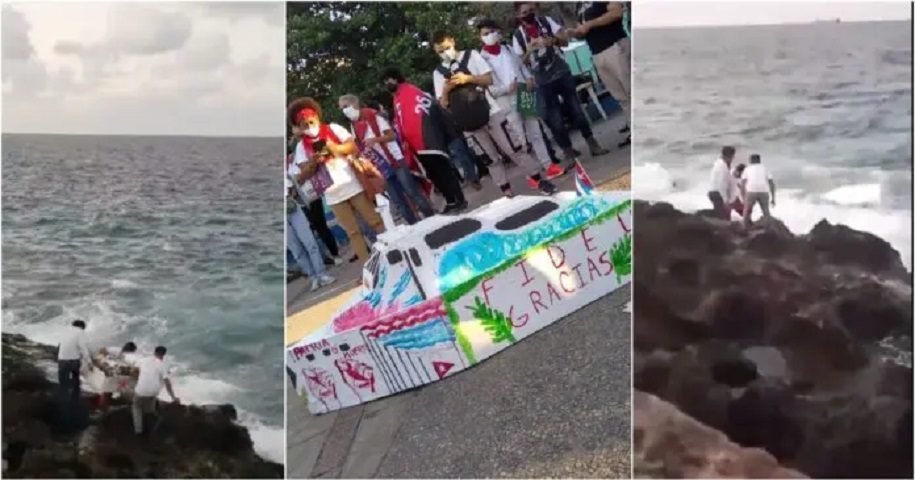 Como parte de las actividades realizadas en Cuba a modo de homenaje por el quinto aniversario de la muerte de Fidel Castro, un grupo de jóvenes lanzaron al mar una réplica del Yate Granma, elaborado por el artista plástico Alexis Leyva Machado, Kcho.