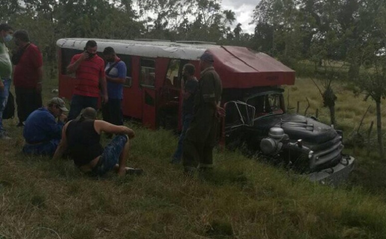 Según la información brindada por el diario local Adelante, el siniestro tuvo lugar cuando un camión de un trasportista privado, que viajaba con destino a La Habana, cayó en la cuneta luego que presuntamente el chofer perdiera el control del mismo.