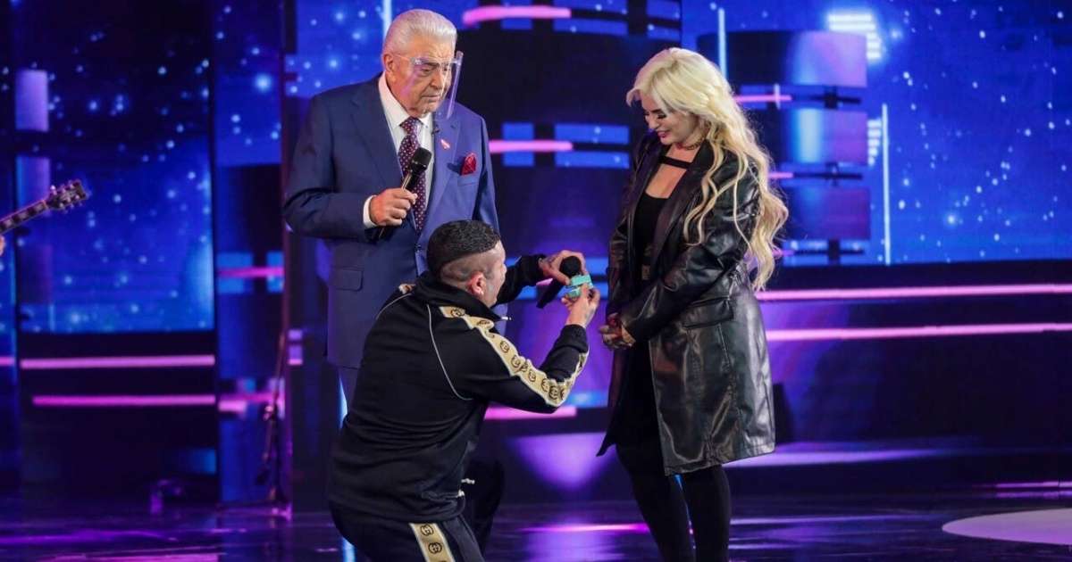 “La quiero llamar al escenario, se llama Laura, te la quiero presentar”, añadió el cantante, que aprovechó el momento para hacerle la gran pregunta a su novia con un anillo que el mismo Don Francisco le dio al intérprete.