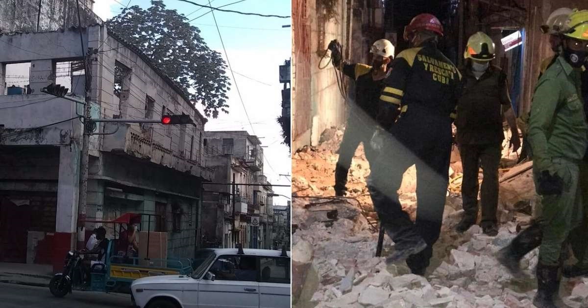 Miguel Alejandro Alderete Recio y su madre, Rosalba, son dos vecinos de la esquina de las céntricas calles habaneras Ángeles y Monte donde en la noche de este jueves se derrumbó toda la pared de un edificio, el que era limítrofe con su pared.