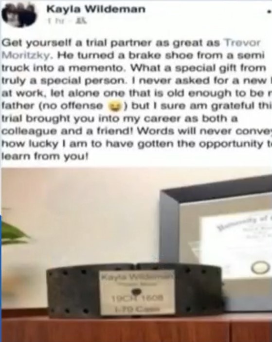 Tanto ella como Rogel se sintieron indignados, al saber del supuesto que regalo que compartieron los fiscales del caso, a modo de trofeo, hecho con una pieza de un freno de camión.